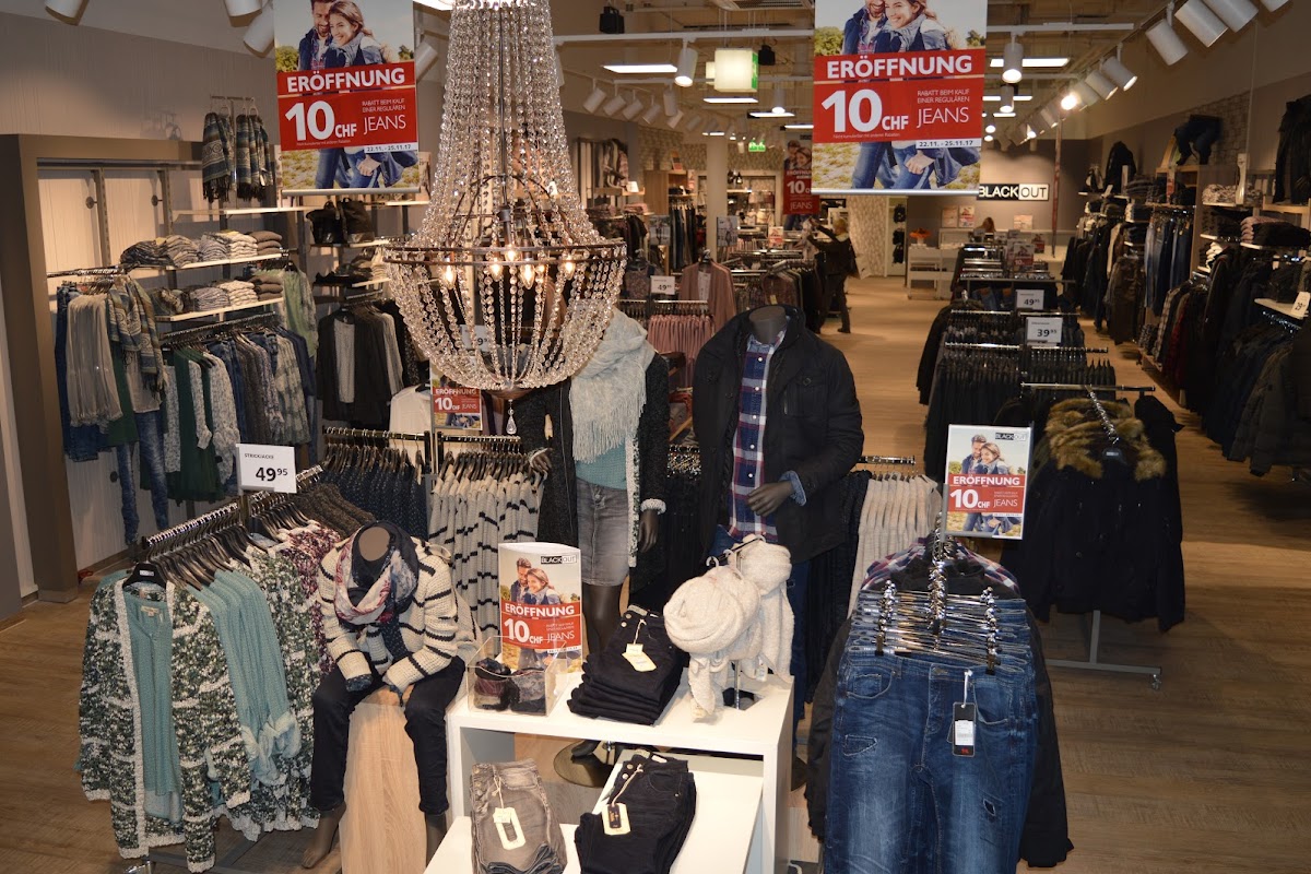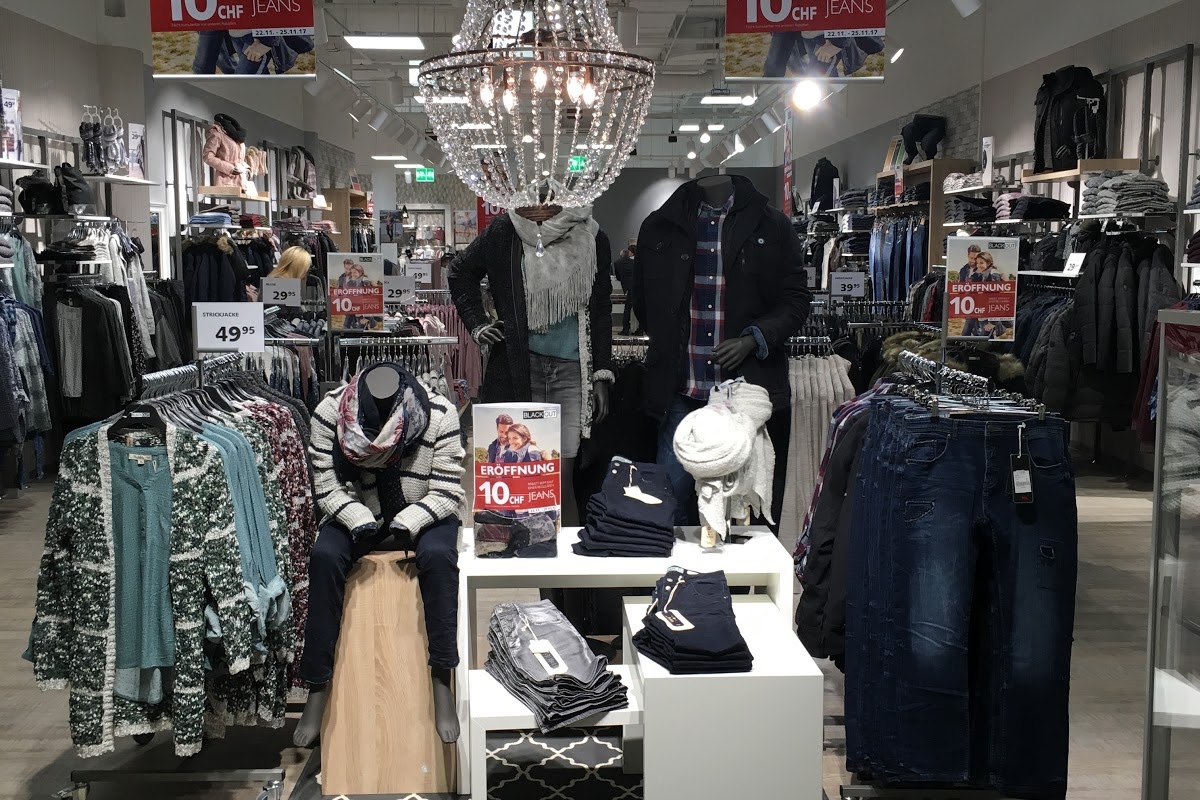 Clothes shop. Mit den wöchentlich aktualisierten Damen- und Herrenkollektionen bringt die BLACKOUT Jeans Fritz Schweiz AG regelmäßig frischen Wind ins Sortiment und bietet seinen Kunden ein umfangreiches Denimsortiment sowie aktuelle Mode- und Accessoiretrends in einem attraktiven Preis- Leistungsverhältnis.