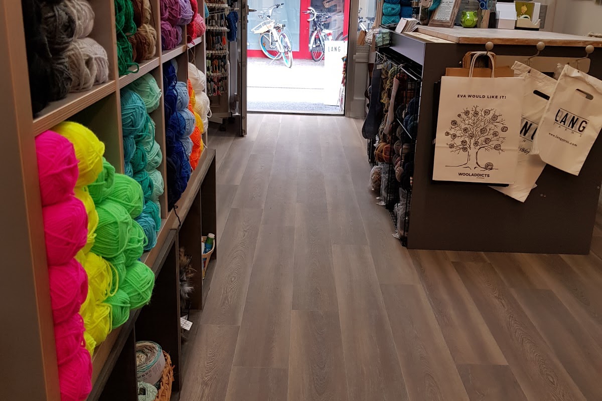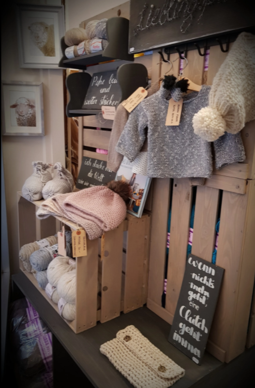 Sklep z przyborami do robienia na drutach oraz z ubraniami.